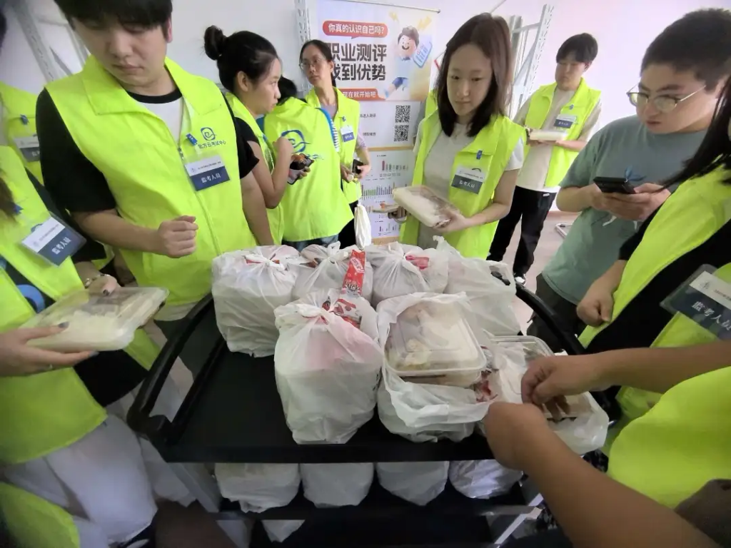 后勤团队4人全力保障考务工作人员的用餐与用水,提供营养午餐与晚餐500份,确保工作人员体力充沛;及时维护考场环境卫生,每场考试结束后清洁一次卫生。