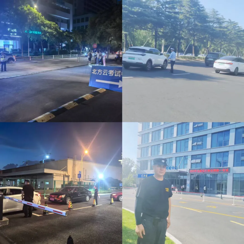 6名安保人员和6名交警协同作战,实施考点周边交通管制,设置考生专用通道。引导接送车辆300余辆,保障考点周边交通顺畅。